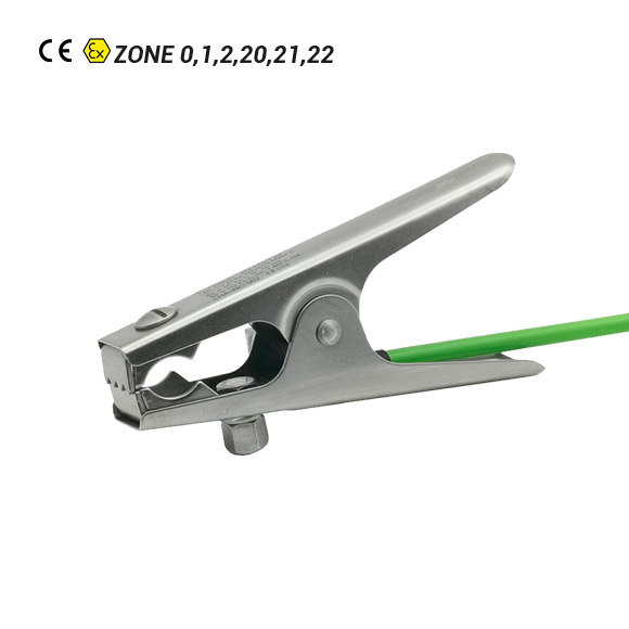 La pince de mise à la terre ATEX PROFI-line 115-1 convient à toutes les applications courantes dans lesquelles des conteneurs non peints, des BIG-BAGs, des tuyaux ou des poignées de conteneurs doivent être mis à la terre.